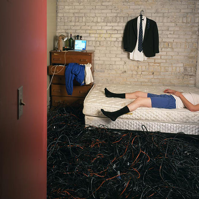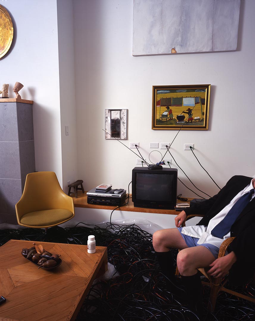 The Living Rooms series images are part of a series of digital composite images that are created by photographing various portions of the image and scanning chrome 4" x 5" positives. In this series, which is one of the artist's first bodies of work, the process as wellas the subject matter include digital imaging culture and post-modernity.