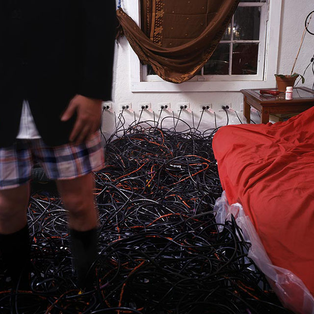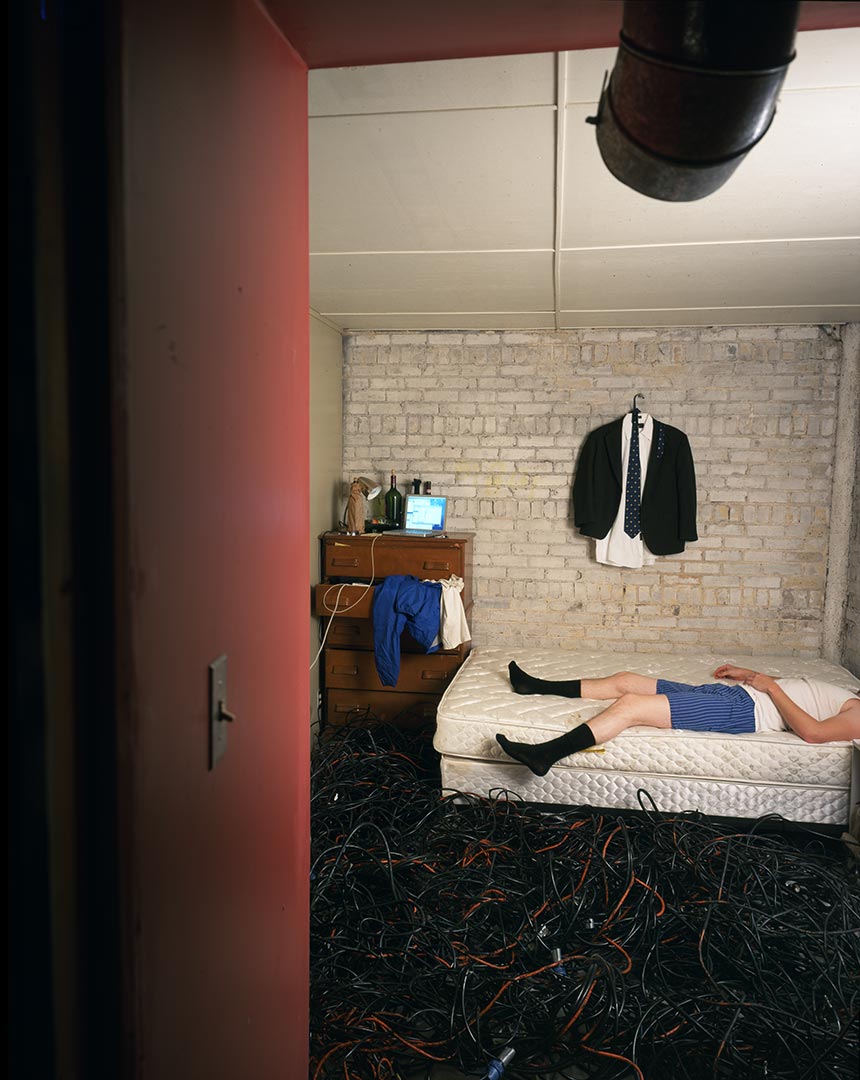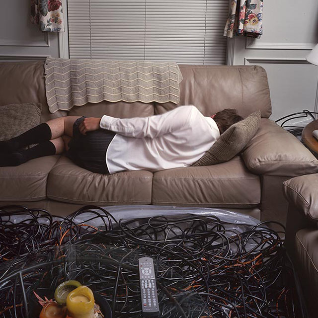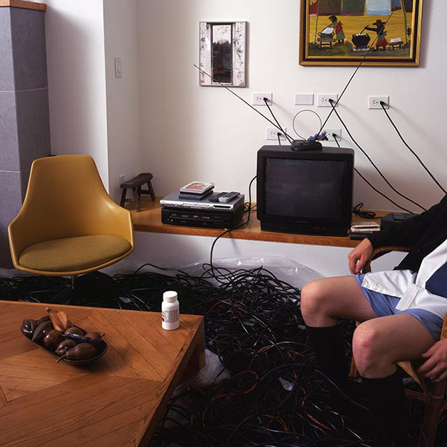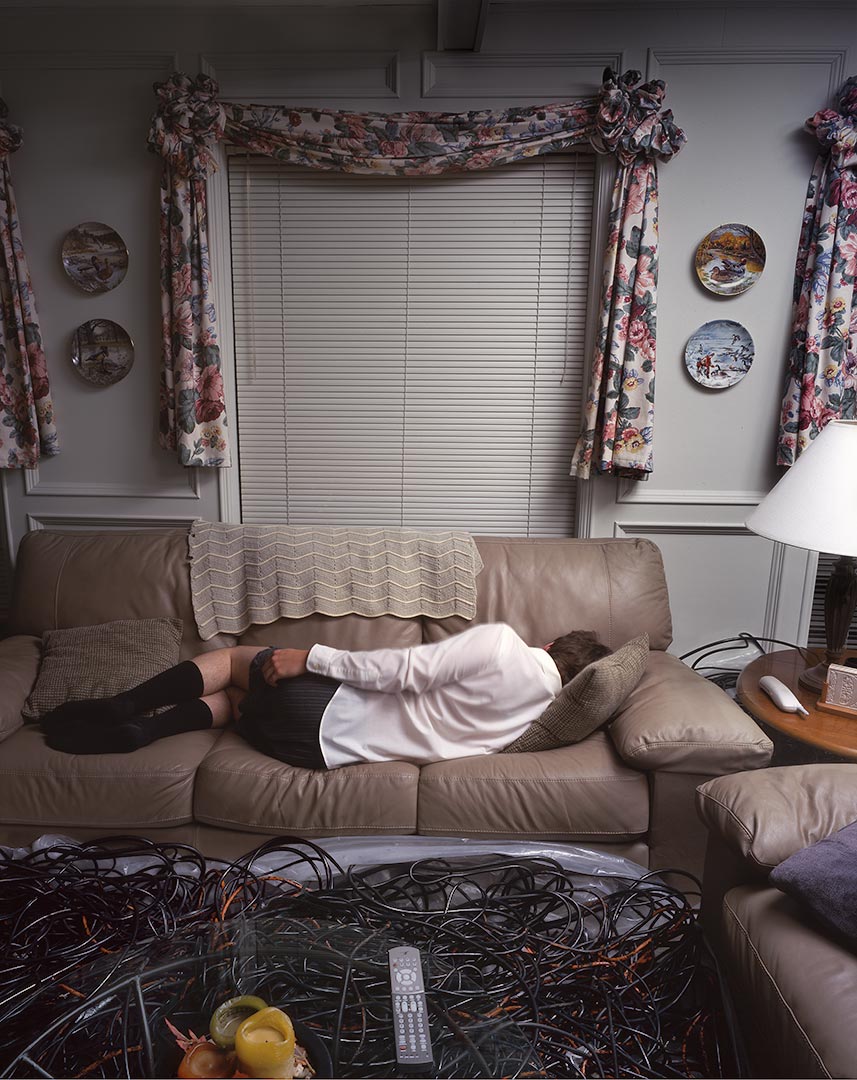 The Living Rooms series images are part of a series of digital composite images that are created by photographing various portions of the image and scanning chrome 4" x 5" positives. In this series, which is one of the artist's first bodies of work, the process as wellas the subject matter include digital imaging culture and post-modernity.