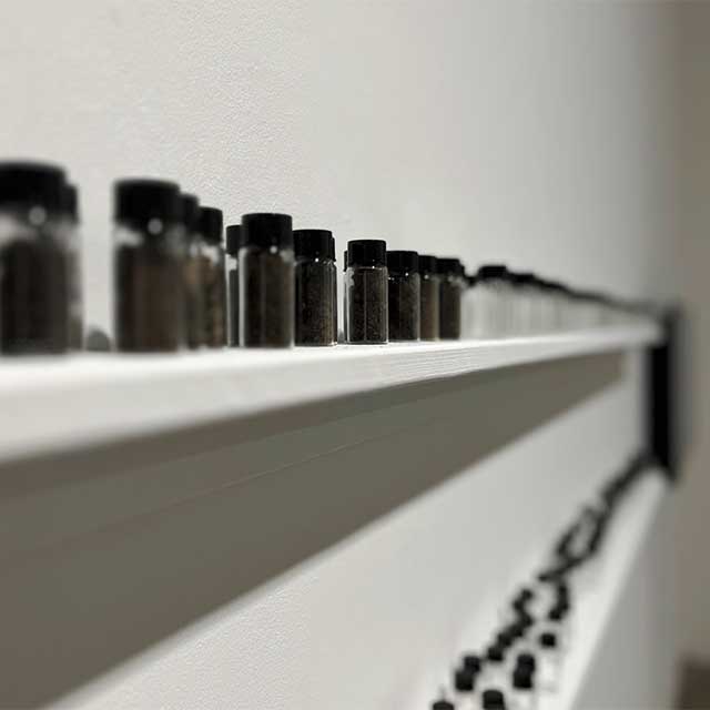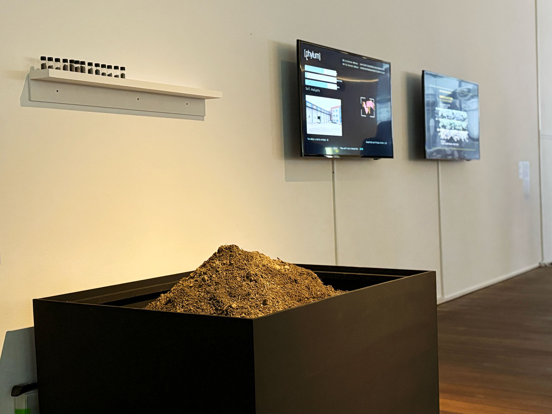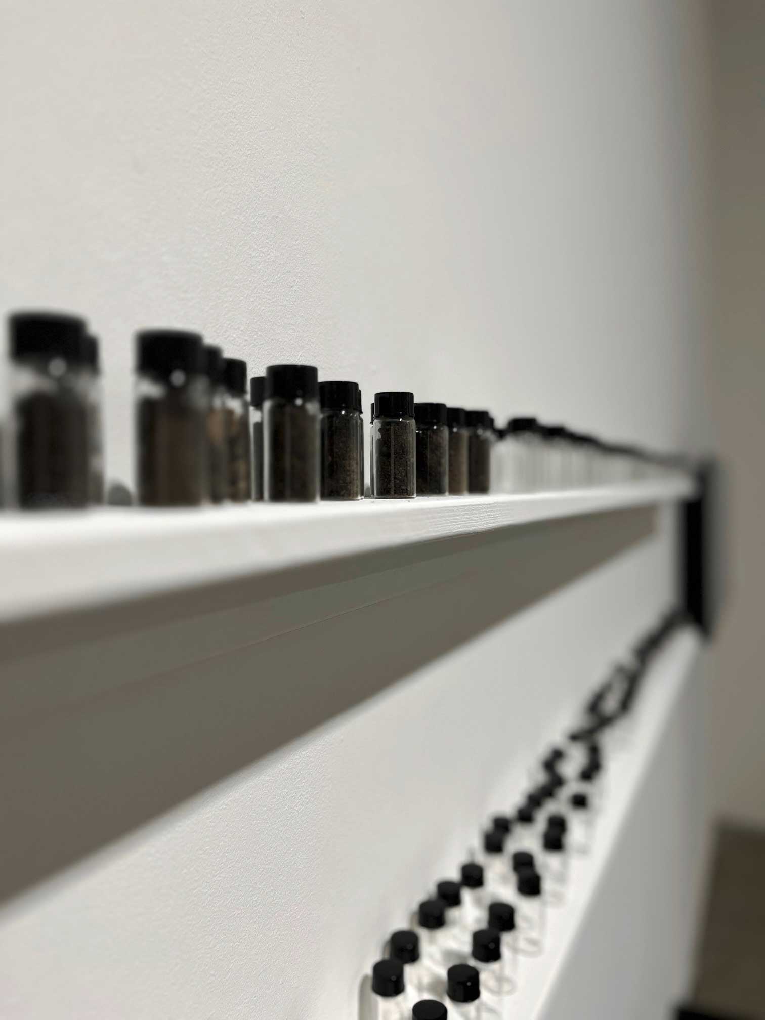 single-channel video, vials of cleaned soil