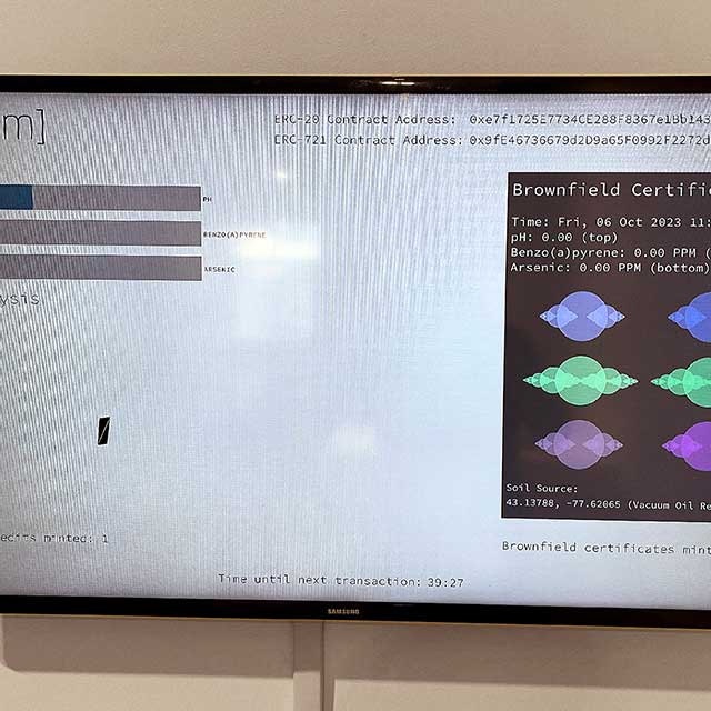 Brownfield Tokenization Prototype is an experimental project exploring tokenization and verification of environmental remediation processes and ecosystem services as art. Contaminated soil taken from a brownfield site in Rochester, NY is used as a medium for generating cryptocurrency via bioremediation (the removal of environmental pollutants using biological systems such as bacteria, fungi, or plants). In a manner similar to the mining of cold for the use as a medium of exchange, Brownfield Tokenization Prototype utilizes the bioremeidation and electricity generating capacity of bacteria as the marker of value.